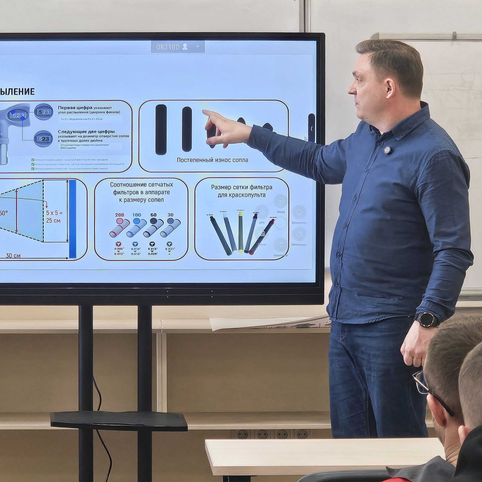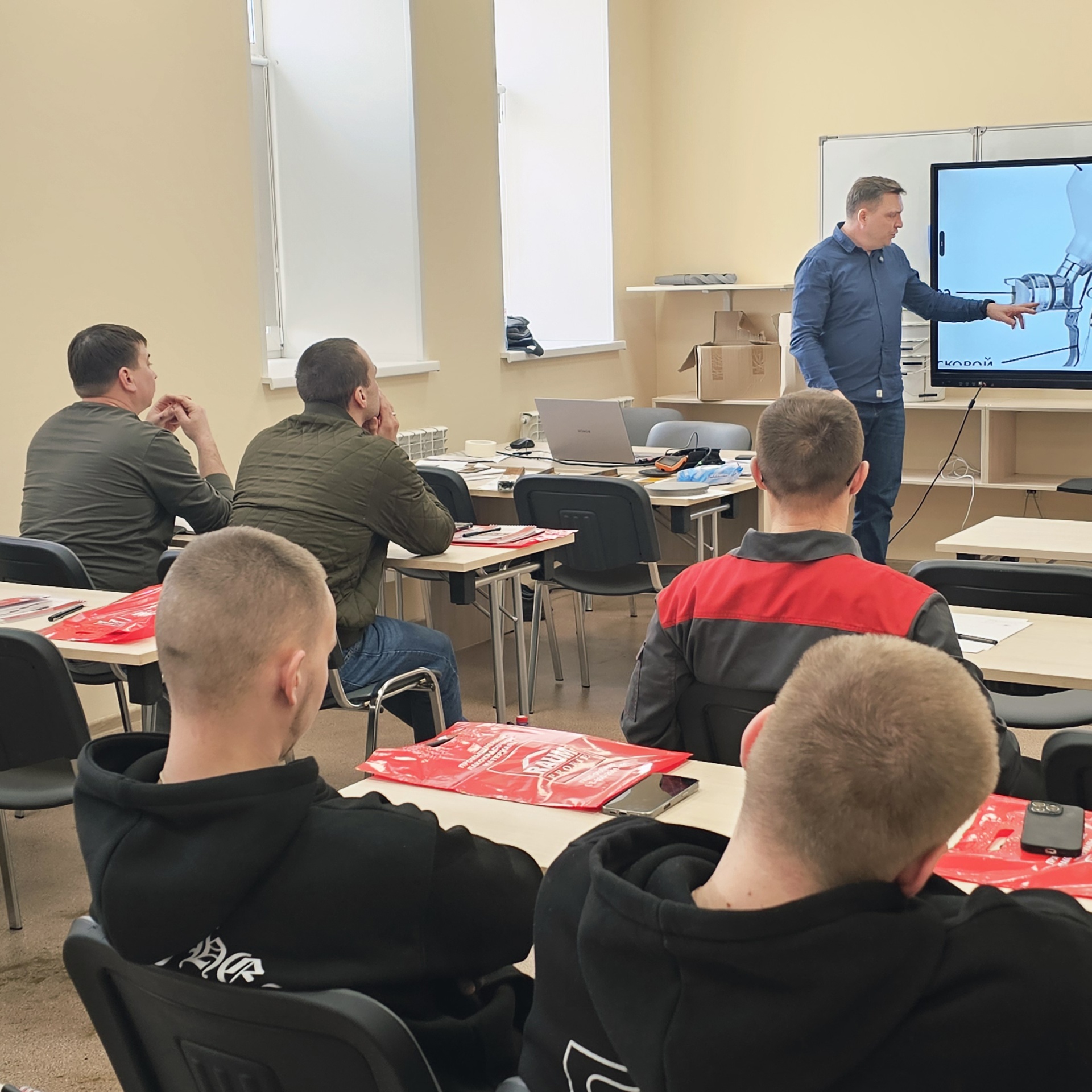 Обучение в формате выездного проходило на заводе «Профессионал». Теоретическая часть программы была адаптирована для сотрудников этого предприятия с учётом специфики работы и выпускаемой продукции, практическая проходила в условиях реального окрасочного цеха.